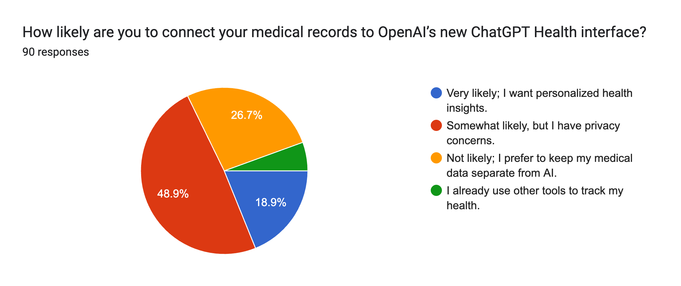 - 28.2% said they were "Not likely" and prefer to keep their medical data separate from AI.